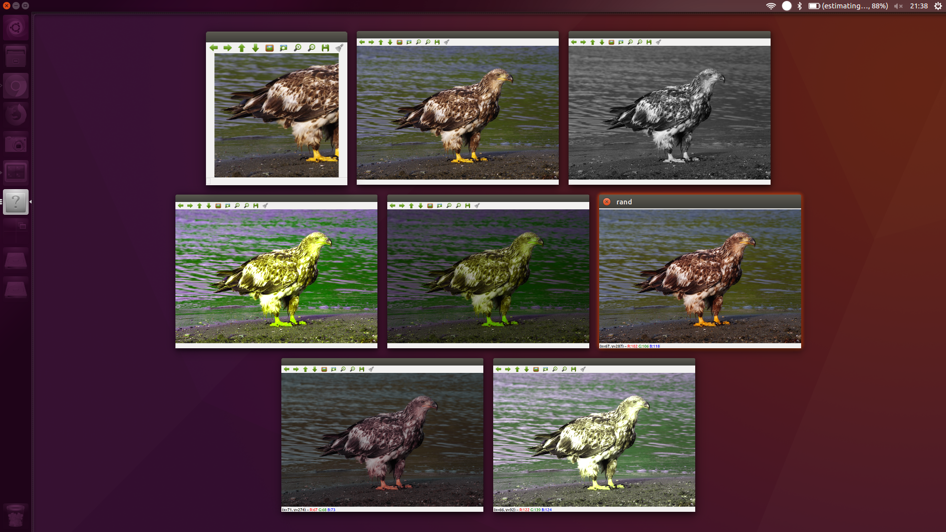 그리고 darknet에 기본으로 포함되어있는 이미지를 보여주는 명령을 통해 최종 점검을 할 수 있다. 실행하면 다음과 같이 8개의 서로 다른 효과를 가진 이미지가 보여진다