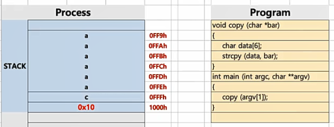 해커들은 저 부분을 이용해서 다른 함수의 주소로 덮어씌우는 공격을 한다. 따라서 strncpy 같은 사이즈를 명시하는 safe 함수를 쓰는 것이 올바른 방법이다
