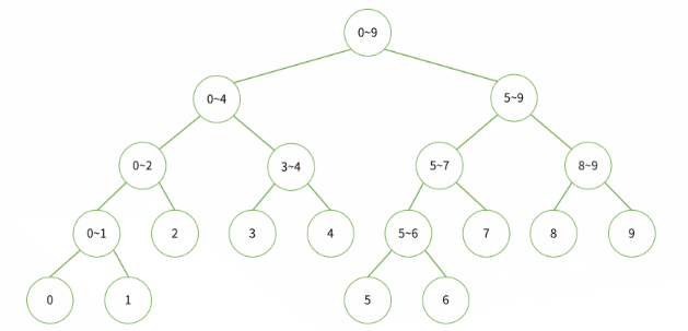 리프 노드를 배열 원소를 하고 루트로 올라갈수록 재귀적으로 누적합이 계산된다. 완전 이진트리로 구성하기 때문에 자식 인덱스는 2*부모 + 1, 2*부모 + 2로 구성된다