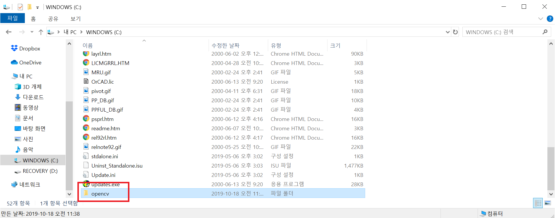 소스포지에 접속해서 opencv 실행파일을 받아서 압축을 푼다. 그리고 폴더를 C:\로 옮기도록 한다