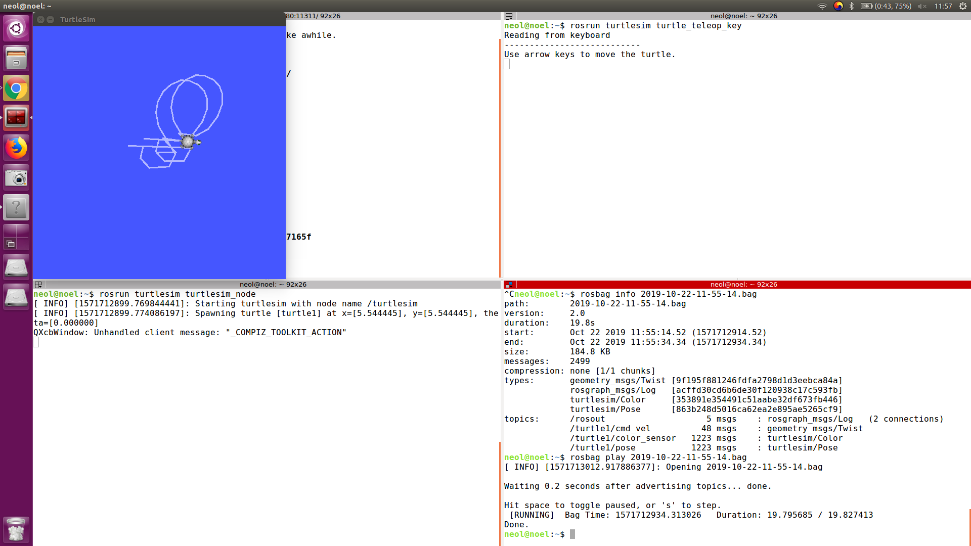 ROS에서 bag 포맷으로 각종 메세지를 저장하고 필요할 때 이를 재생하여 이전 상황을 그대로 재현할 수 있다. turtlesim을 실행하도록 한다