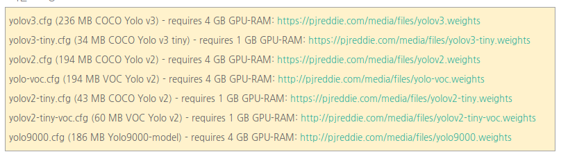 현재 GPU 메모리는 2G로 아쉽게 기본 cfg 파일은 실행시킬 수 없는 환경이다. 따라서 4G 메모리가 필요한 파일을 실행시키면 메모리 dump 에러가 발생한다. 그래서 tiny 파일만 실행이 가능하다