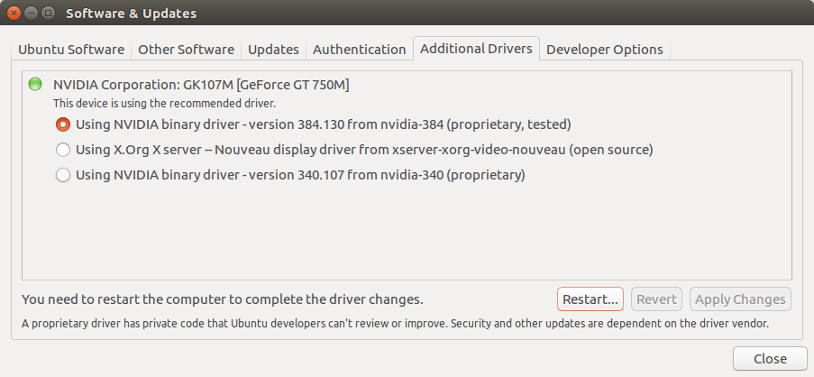 Nvidia 설치는 기본적으로 설치되어 있는 드라이버를 설정했다. 최대한 있는 것 중 높은 버전으로 설정했다. 나중에 CUDA 호환에서도 영향을 미친다고 한다.