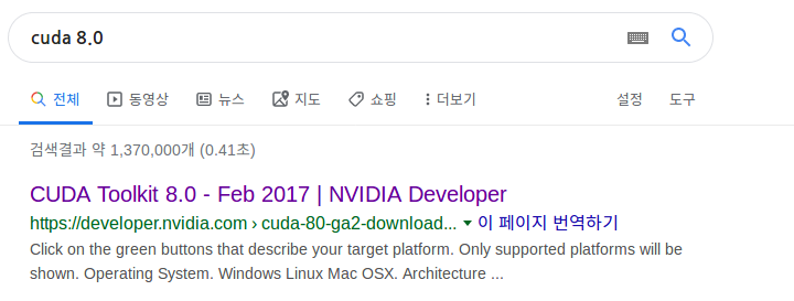 계정 로그인을 하고 운영체제에 맞게 설정한 후 cuda_8.0.61_375.26_linux.run 파일을 받았다
