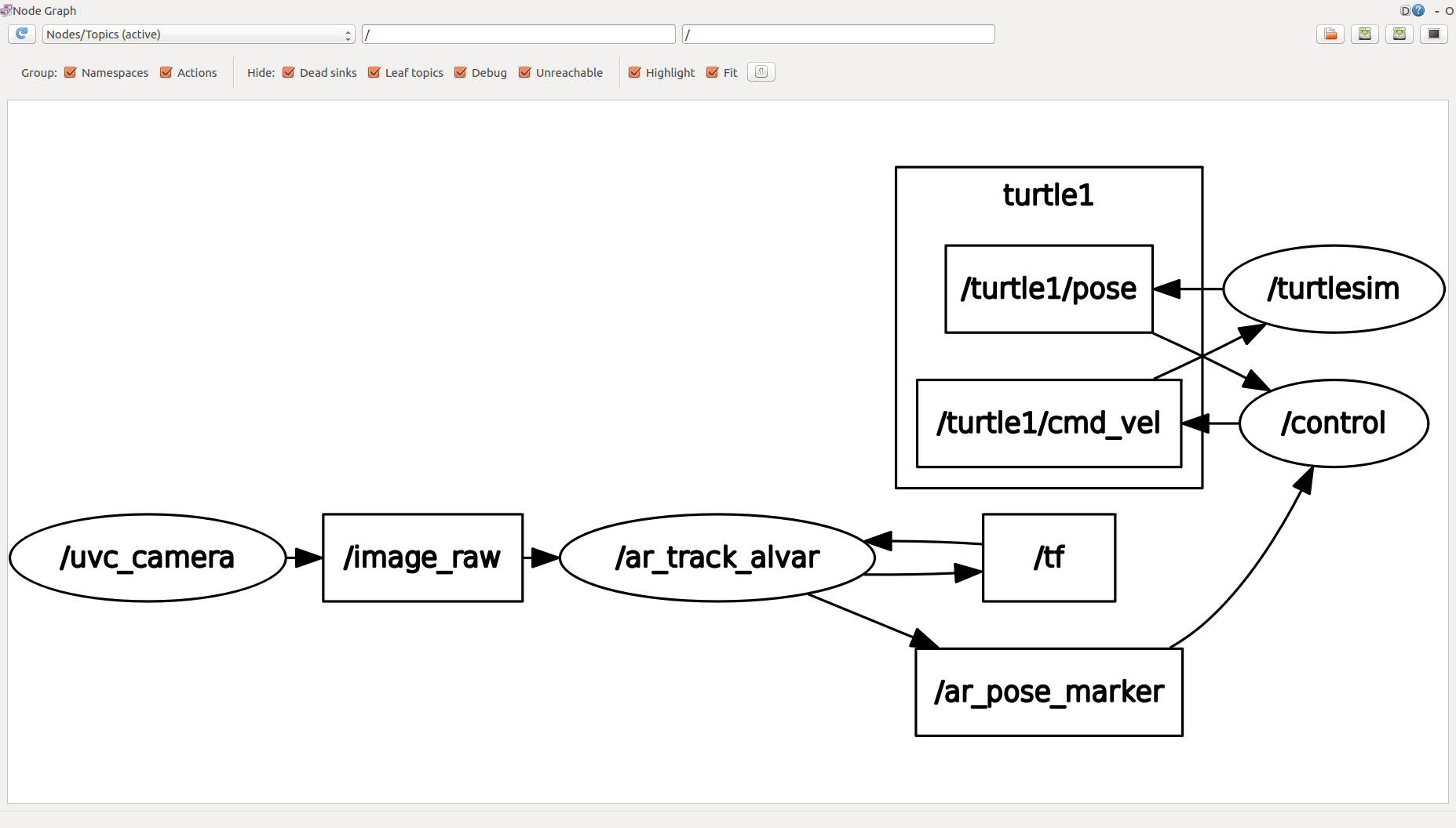 따라서, 카메라 - AR마커 alvar - 새 작성 노드 - turtlesim으로 노드 구성을 하려고 한다