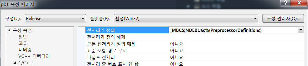 단, Release 모드이고 전처리기 명령에 NDEBUG; 명령이 추가되면 assert 실행이 되지 않는다