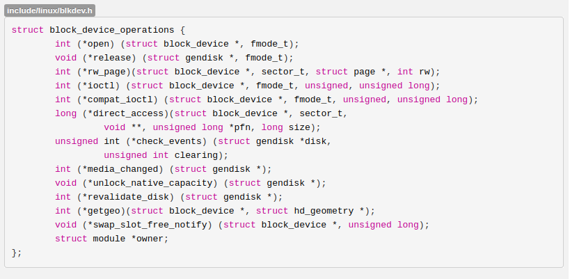 보통 C언어는 객체지향 문법을 지원하지 않는다고 알려져 있다. 하지만 C언어에서도 구조체와 함수 포인터를 활용하면 충분히 객체지향으로 프로그래밍을 할 수 있다. 다음은 리눅스 커널에서 함수 포인터로 객체지향을 구현한 코드다.