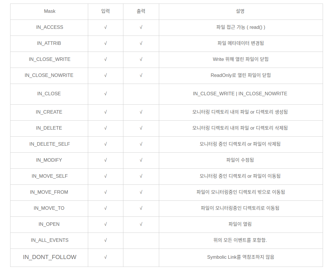 파일이나 디렉토리에서 발생하는 이벤트를 모니터링하는 inotify