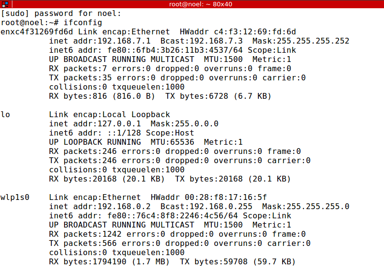 먼저 root 권한으로 ifconfig 혹은 ifconfig -a을 입력하자