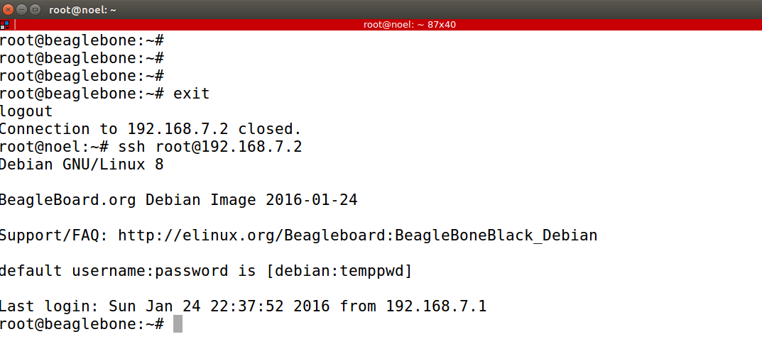 ssh로 비글본에 원격접속이 완료되었음을 알 수 있다