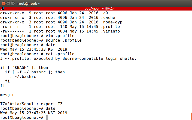 맨 아래에 TZ='Asia/Seoul'; export TZ 추가