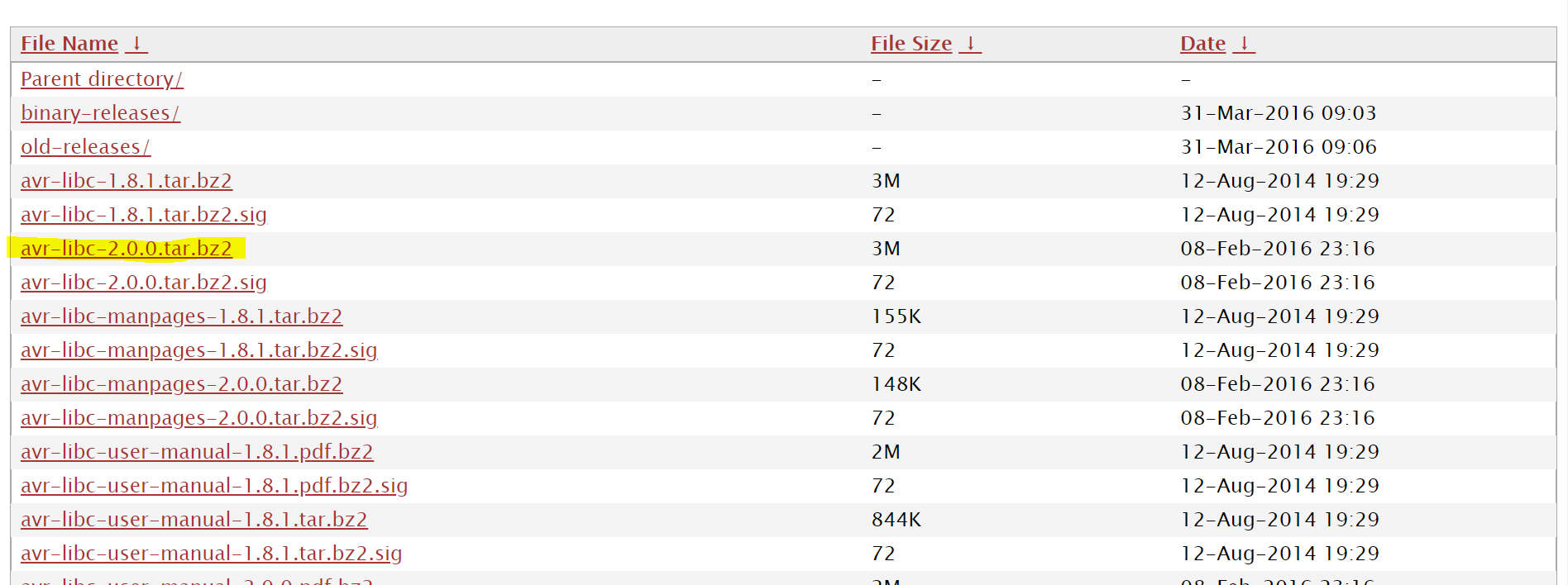 avr-libc 소스파일을 보고 싶으면 아래 이미지 주소로 접속하면 된다. 저는 형광펜으로 칠한 파일 최신 avr-libc를 다운로드 했다.