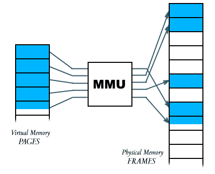 가상 메모리는 이 문제를 해결할 수 있는 기술이다. 가상 주소와 물리 주소를 나누는 것이다. 프로세서는 가상 주소를 사용하고, 실제 CPU가 메모리에 접근할 때는 가상 주소를 물리 주소로 바꾸면 된다. 하지만 실제 가상 주소를 물리 주소로 바꾸는 과정은 시간이 오래 걸리기 때문에 하드웨어적으로 도움이 필요하다. 이를 보완해주는 하드웨어 장치가 MMU로, 주소 변환이 빠르기 때문에 별도의 장치를 둔다.