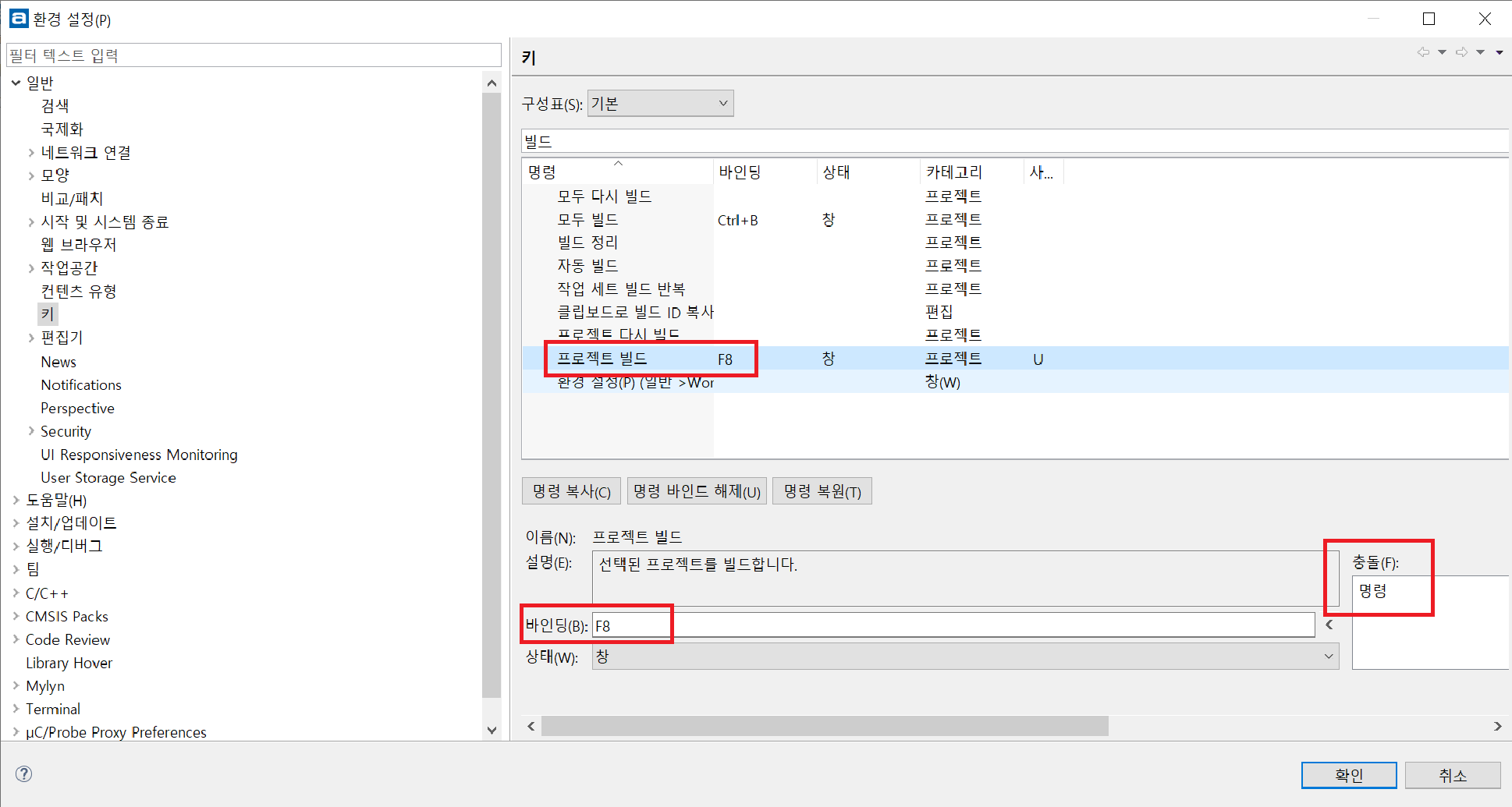 ** 단축키를 설정하고 싶을 때 ex) 프로젝트 빌드를 F8로 설정