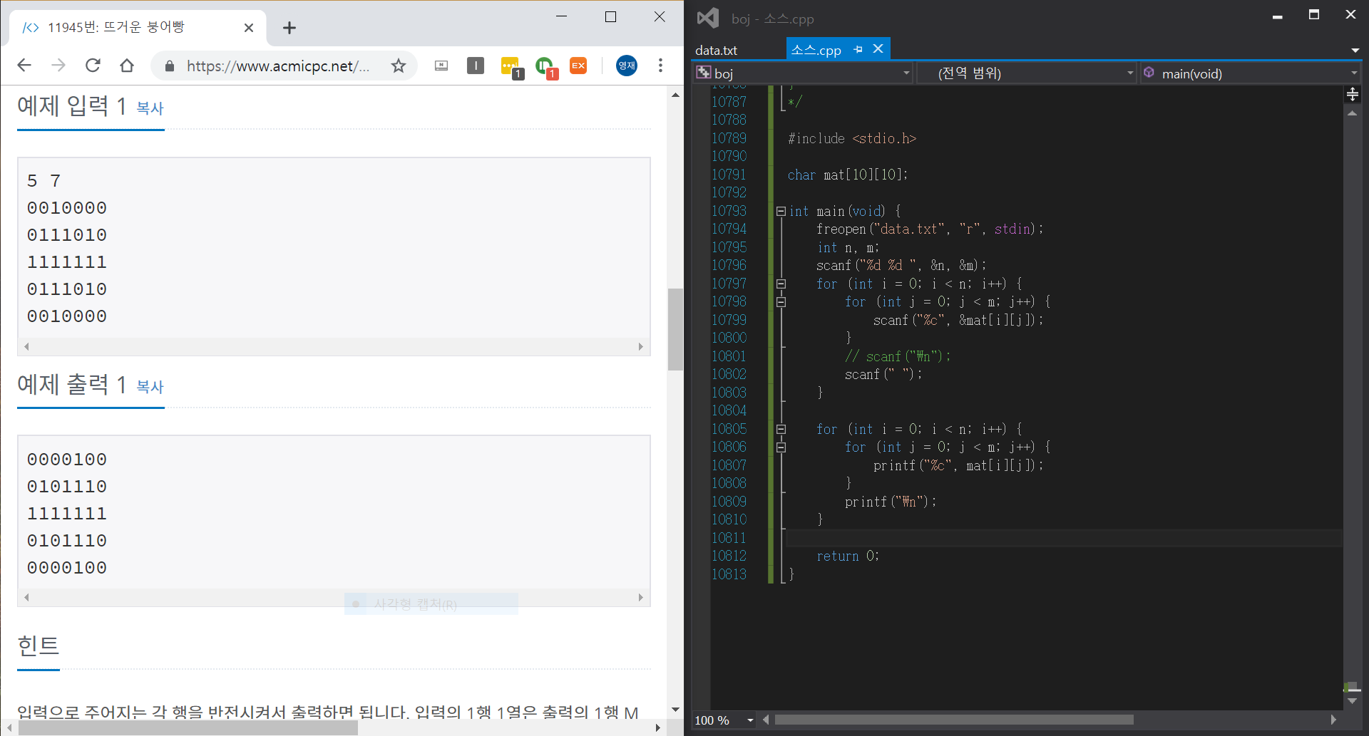 저러한 입력에서 가장 주의해야할 것은 7 뒤에 생기는 개행이다