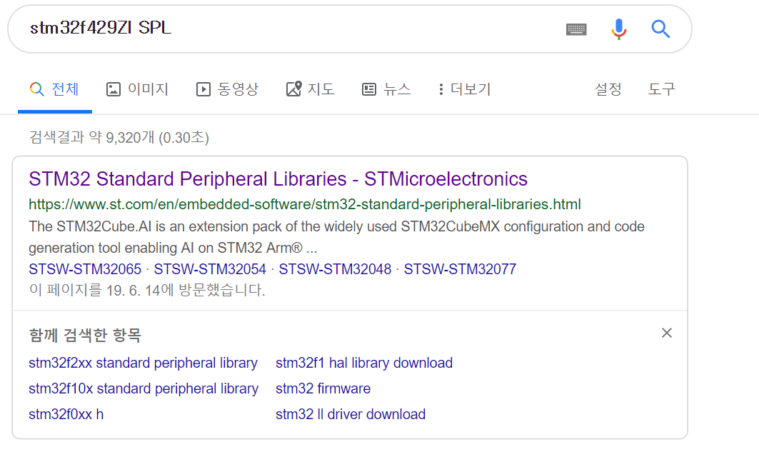 1. 구글에 stm32f429ZI SPL을 검색하면 첫 링크에 ST 사이트가 뜰 것이다. 접속하자