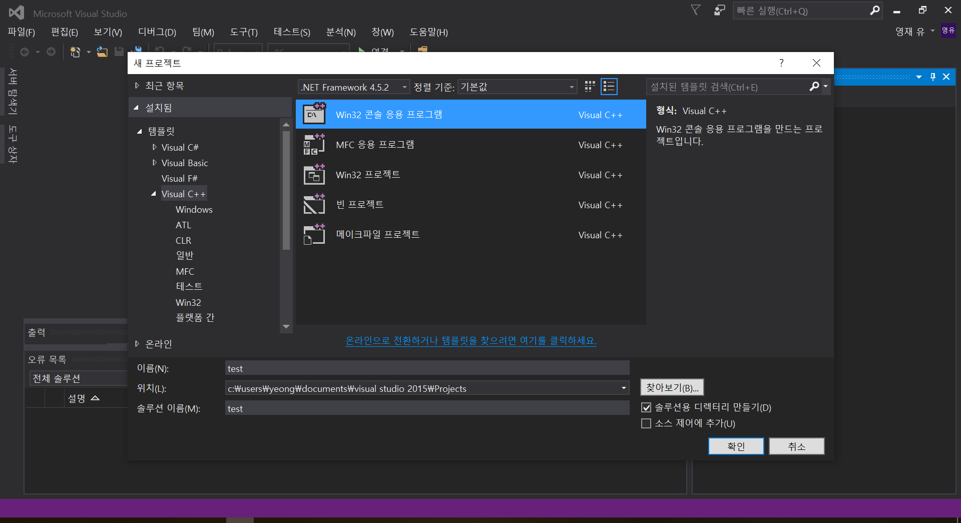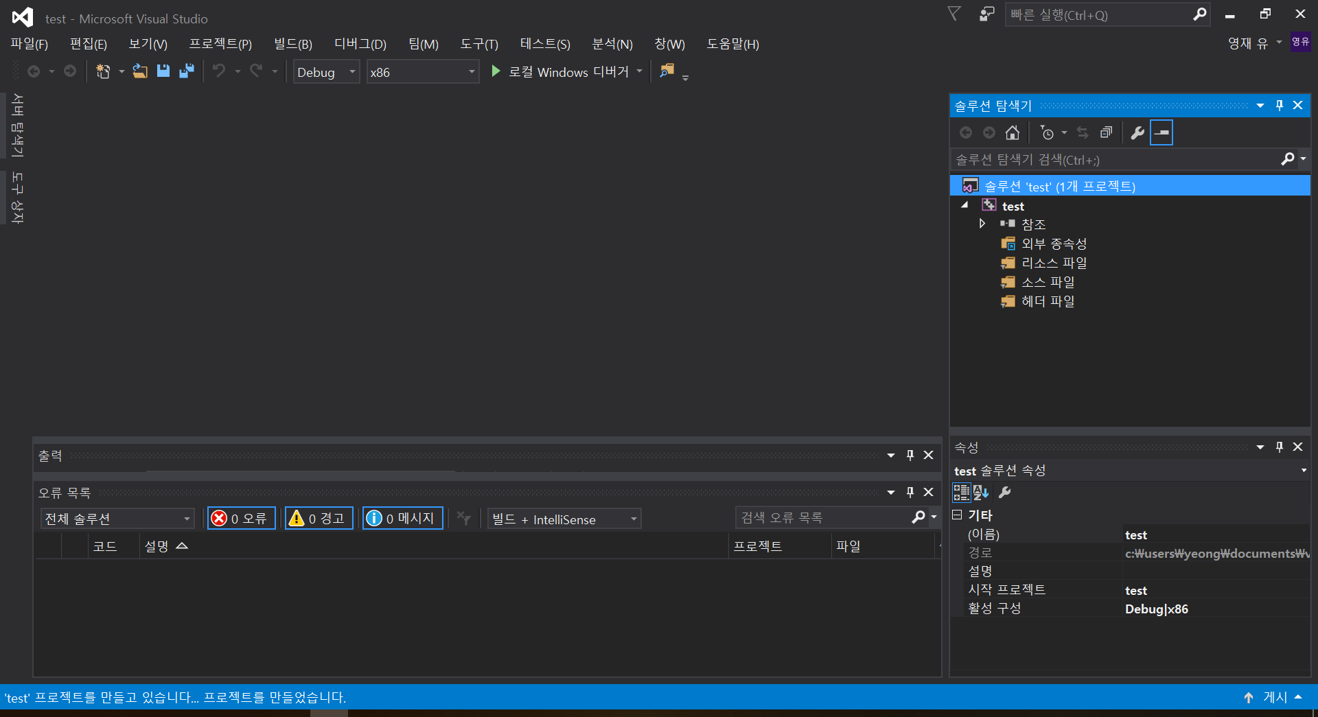 새로운 프로젝트를 test1이라는 이름으로 만들자