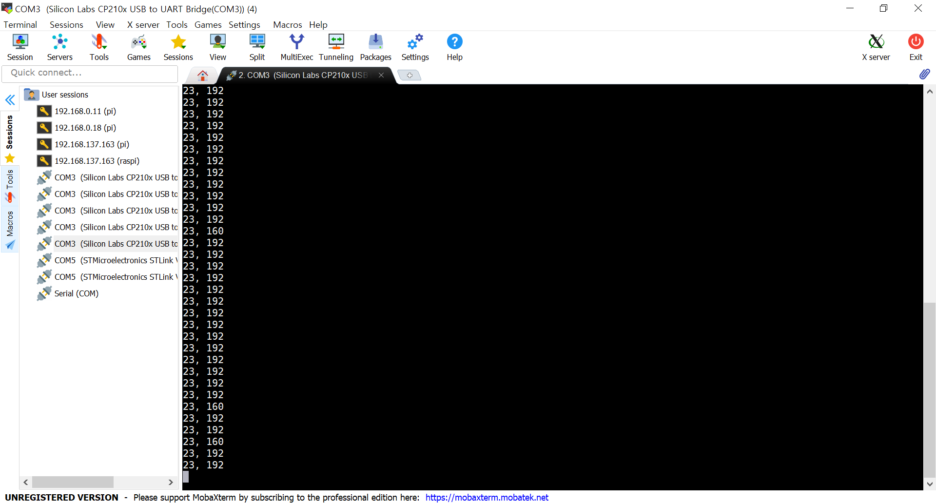 9비트 모드이지만 10, 11, 12비트 값이 움직이는 현상을 볼 수 있다