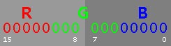 [+추가] RGB565란 적색이 5비트, 녹색이 6비트, 청색이 5비트로 한 픽셀의 색상을 나타내며 총 2바이트로 사용되는 색상체계다. 0xF800(적색), 0x07E0(녹색), 0x001F(청색)을 뜻한다