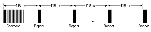 비트 단위 데이터 이외에도 리모콘에서는 데이터의 시작을 표시하기 위해 특별한 신호를 전송한다. 데이터 시작을 표시하는 신호는 일반 데이터와 반복 데이터의 두 가지가 있다. 일반 데이터는 시작 신호 이후 4바이트의 데이터를 펄스 거리 인코딩에 의해 전송한다. 반면 반복 데이터는 리모콘에서 동일한 버튼을 계속 누르고 있는 경우 전송되는 데이터를 시작 신호 이후 하나의 펄스만이 전달된다