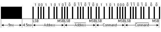 적외선 데이터 포맷을 알아보면 위에서 말했듯이, 펄스열로 바꾸는 방법은 여러 가지가 있는데 흔히 NEC 프로토콜을 사용한다. NEC 프로토콜은 펄스거리 인코딩(Pulse Distance Encoding) 방식을 사용한다