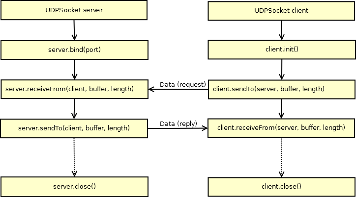 UDP 프로토콜은 데이터 전송 시 신뢰성은 없지만 속도가 빠르기 때문에 일반적인 근거리 LAN 환경에서 많이 사용된다. BSD 소켓 함수에서 socket 함수의 인자로 SOCK_DGRAM 옵션을 통해 설정할 수 있다. 일반적으로 UDP 서버와 클라이언트는 sendto() 함수를 통해 메세지를 전달하고, recvfrom() 함수를 통해 수신하게 된다. 그리고 사용이 끝나면 close로 닫아주게 된다. UDP 서버와 클라이언트 구조는 위와 같이 비슷하지만, 서버는 특정 포트를 바인딩해야 하는 특징이 있다