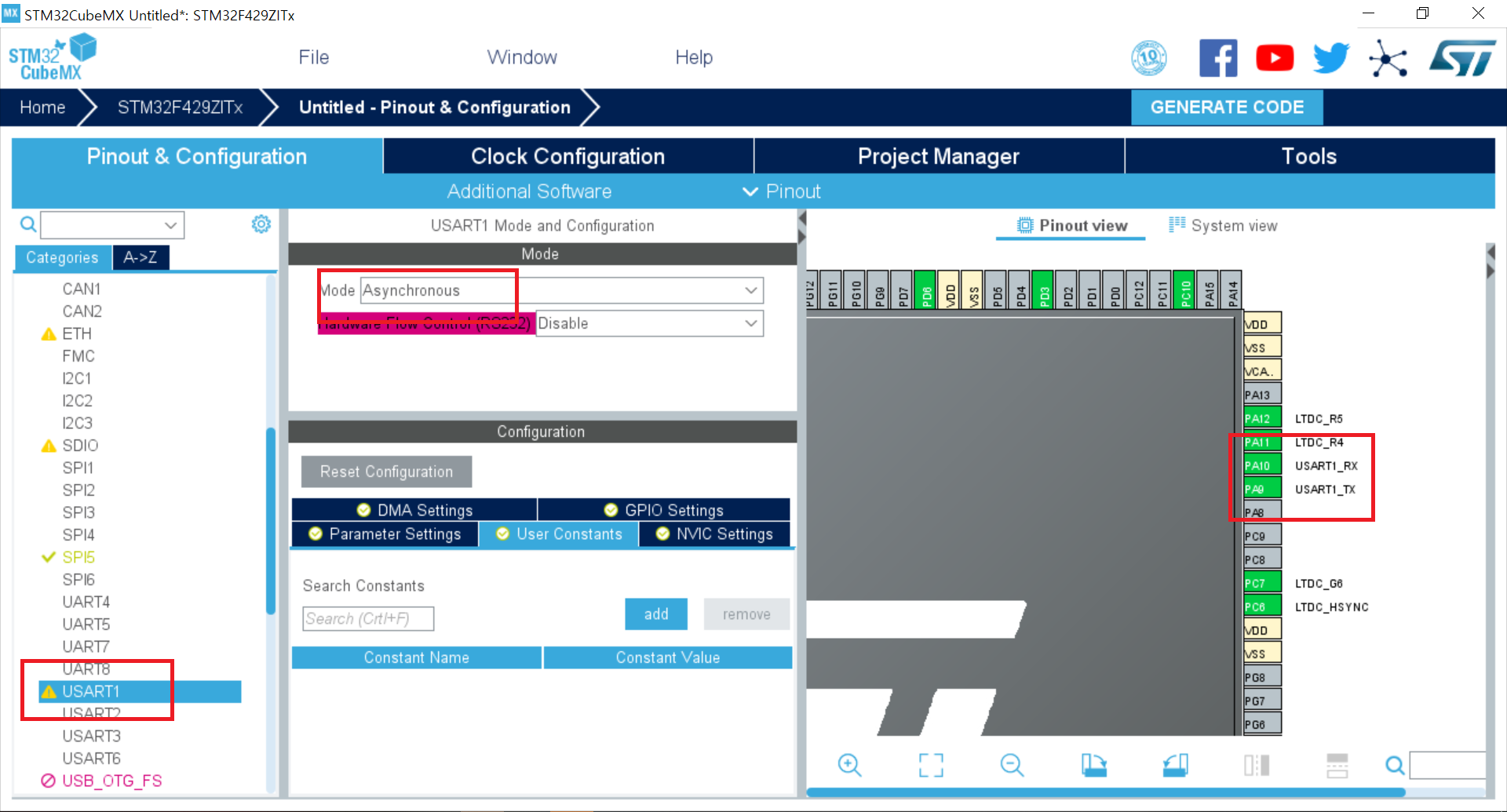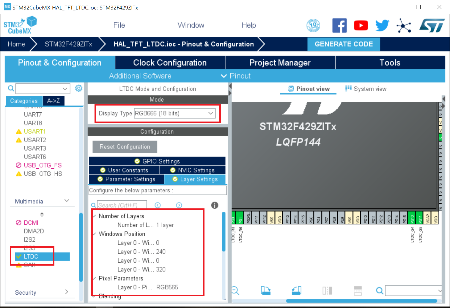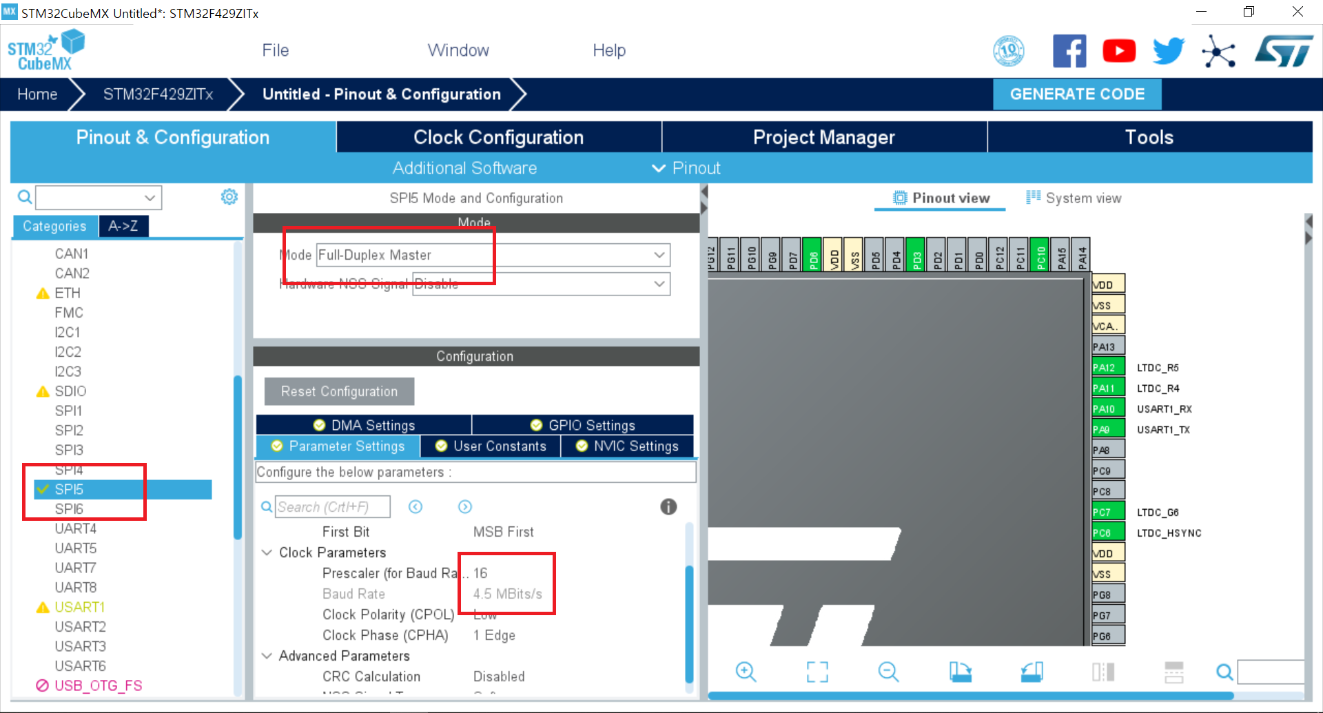 1. CubeMX에서 UART, SPI5, LTDC를 설정해야 한다