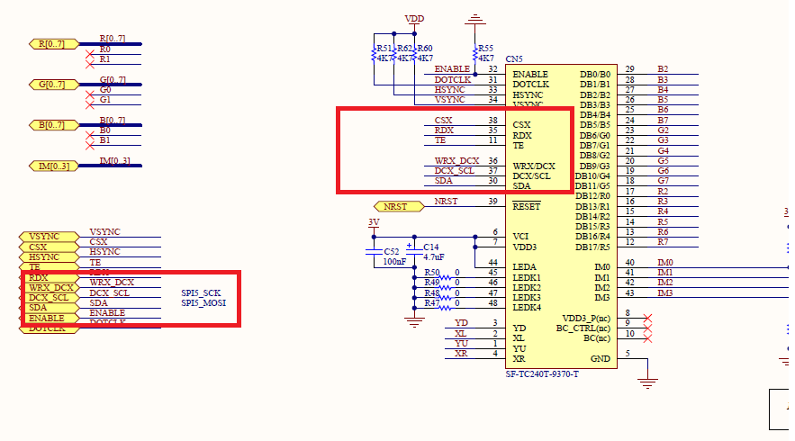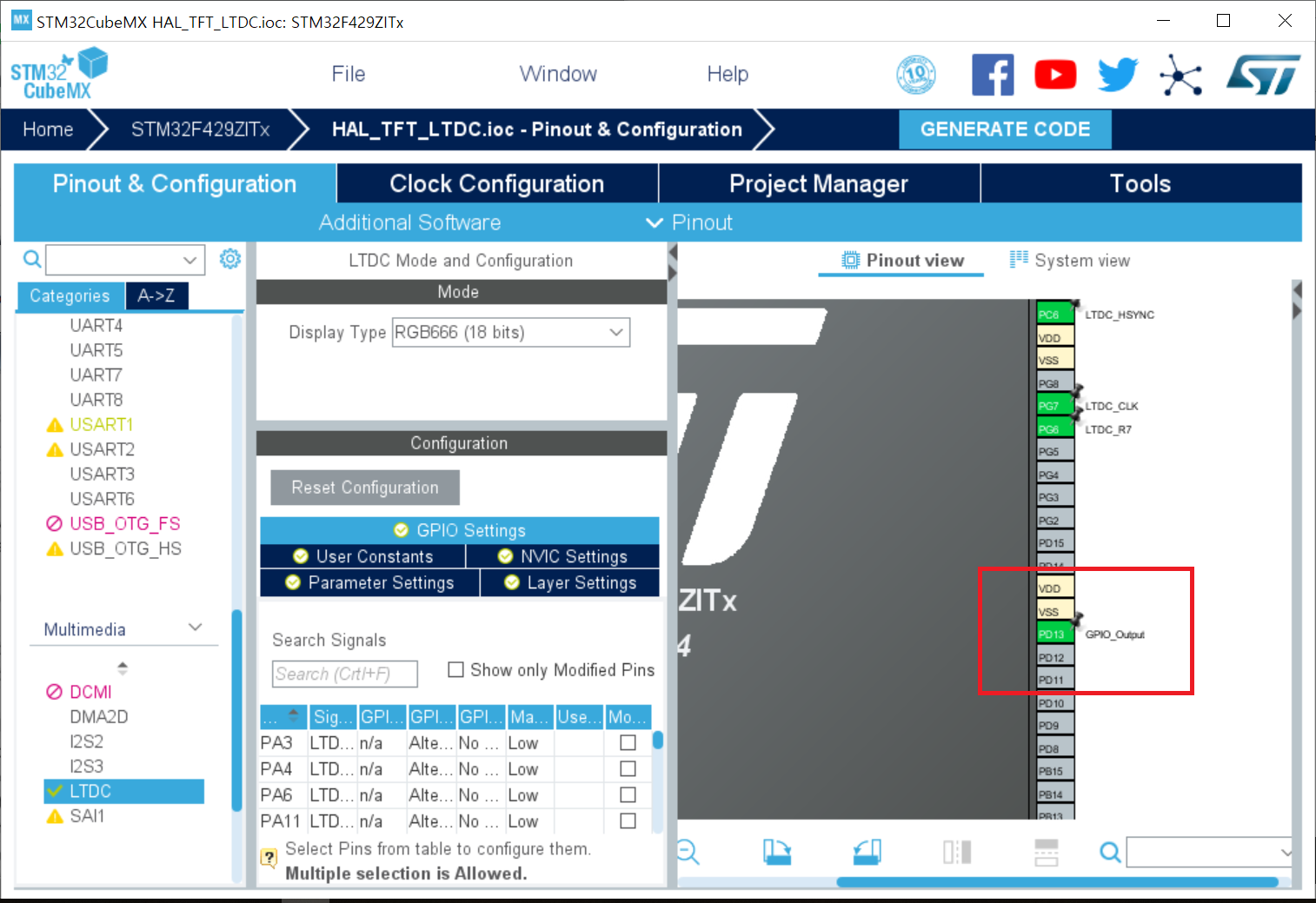 SPI에 사용되는 SS핀과 추가적으로 데이터와 명령어를 구분하는 D/CX핀도 따로 연결해야므로 반드시 PC2와 PD13을 출력으로 설정하도록 한다