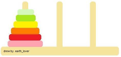 가장 왼쪽에 있는 원판들을 그대로 가장 오른쪽에 있는 원판으로 옮기는 작업이다. 중간에 있는 기둥을 사용해서 말이다