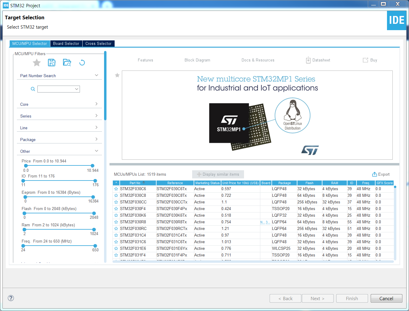 설치가 정상적으로 완료되면, 다음과 같은 화면이 뜰 것이다. 자신이 사용하는 보드 혹은 칩을 선택하면 해당 칩에 대한 정보 데이터를 다운로드 받기 위해서 처음만 시간이 꽤 소요될 것이다.