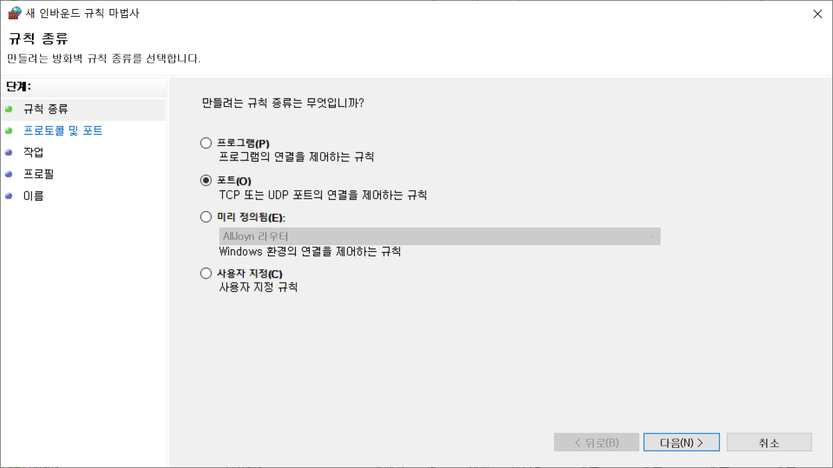 포트로 설정한 후