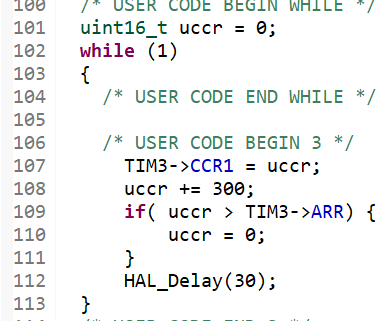 시간에 따라서 밝기를 조절하고 싶다면 다음과 같이 ccr을 변경하는 코드를 추가하면 된다