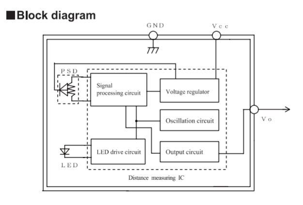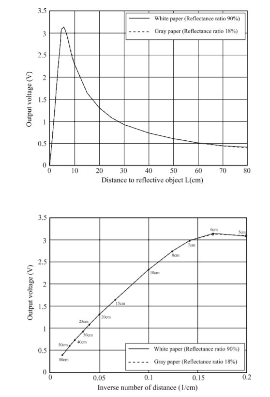 적외선 거리센서의 구동원리는 적외선을 발광하여 반사물에 반사되는 적외선 양에 따라 거리를 측정하며, 측정된 거리만큼 아날로그 전압으로 출력되는 것이다. 거리 측정은 10~80cm로, 10cm 이하는 측정이 되지 않는다. 그리고 반사물의 색상과 반사율에 의한 영향을 크게 받지 않는 것과 초음파 센서와 다르게 값이 잘 튀지 않는 다는 것이 장점이다