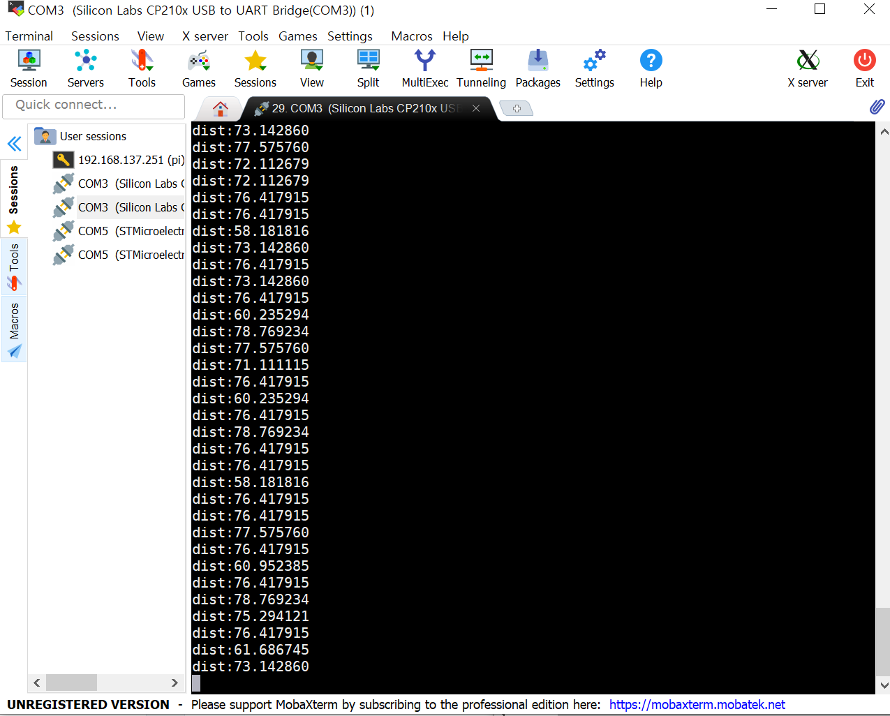 아래 그래프를 역으로 눕혀서 생각해보면 volt가 입력이고, dist가 출력이 된다. 따라서 대충 1을 기준으로 맞춘다면 0.04*volt가 출력인 y가 된다. 이를 뒤집는다면 실제 거리가 구해질 것이다