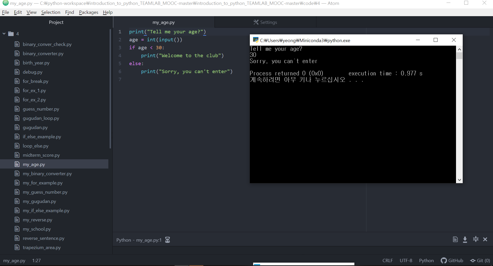 Atom에서 파이썬 인터프리터 실행하기 - 2