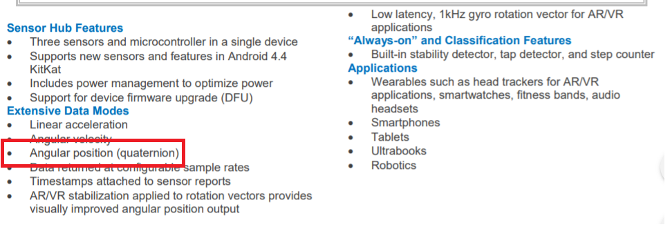 BNO080은 센서 내부에 MCU가 내장되어 있어, 센서 내부에서 자체 연산을 한 이후에, 사원수 형태로 회전 각도를 내보내준다. 아직까지 가격이 MPU 시리즈보다 높지만, 개발 시간이 단축된다는 점에서 매력적인 선택이라고 할 수 있다