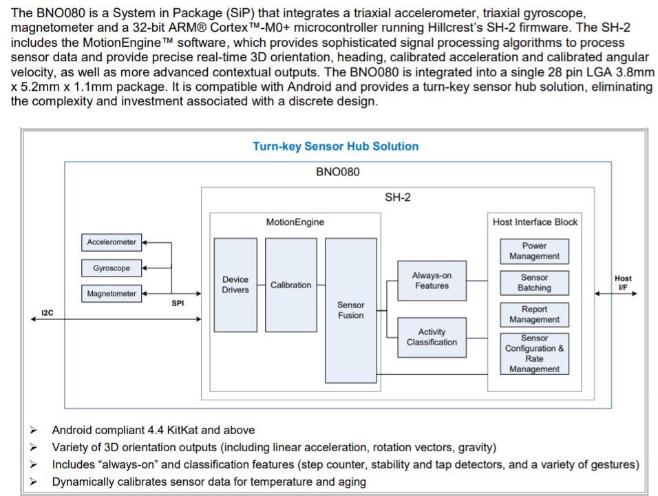 BNO080은 센서 내부에 MCU가 내장되어 있어, 센서 내부에서 자체 연산을 한 이후에, 사원수 형태로 회전 각도를 내보내준다. 아직까지 가격이 MPU 시리즈보다 높지만, 개발 시간이 단축된다는 점에서 매력적인 선택이라고 할 수 있다