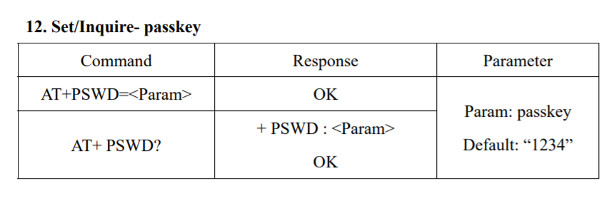 다음은 비밀번호를 설정하는 AT 명령어다. 기본 비밀번호는 1234다