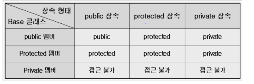 그리고 클래스 상속에서 유도 클래스는 기본 클래스의 상속 속성을 정할 수 있다