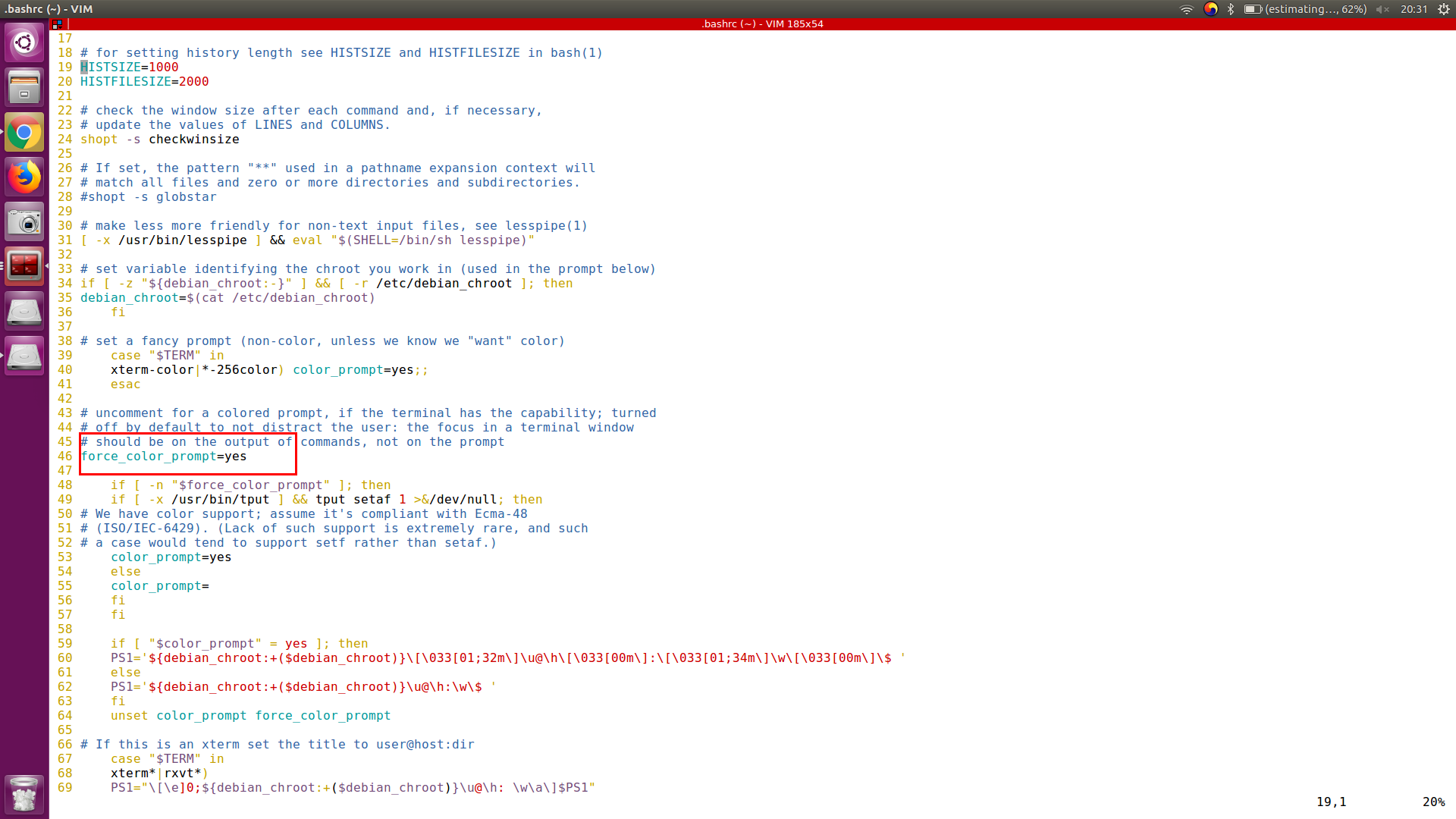 ~/.bashrc에 들어가서 46번 행의 주석을 제거한다